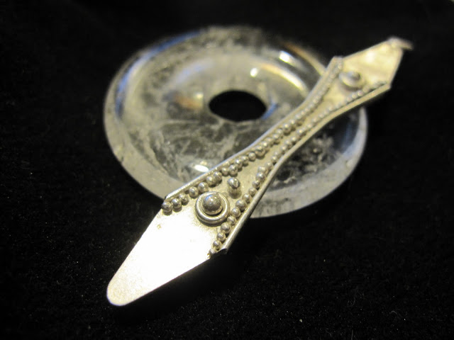 Yet as a seasoned veteran of silversmithing courses, having done it for two years already, this is all rather hard to reconcile with how difficult it is to work with a course that is not in any way based on teaching but rather on a person trying to make a bit of cash out of a skill they have. The skill levels of the class are wide-ranging and mixed but our woman treats us all with admirable equality in that she leaves us all the hell alone while she chats about reading glasses. The poor beginners are left to flounder and I end up constantly having to try to help them and give advice, which the tutor later announces is ‘Blödsinn’ because she does it differently, thus earning me many a bitter look from my classmates. She helps everyone exactly two-thirds as much as they actually need; she advised me to reuse all my old silver scrap and cast it as new sheet rather than buying sheet silver due to the vastly increased price. She then cast it for me as I had never done it before and told me to get to work rolling it to the right thinness on the roller. She then ignored me with vigorous determination as I spent the following two hours tearing my biceps to shreds gradually rolling a half-centimetre-thick chunk of metal down to a half-millimetre in increments as small as a hair’s breadth on a century-old roller which was not bolted to the floor but was wobbly like a schooldesk and pressed a charming but unwanted bananalike curve into the metal as I continued to work it. And if anyone does ask this woman a question she responds with her ubiquitous and enraging, “Ist egal…” (it doesn’t matter).