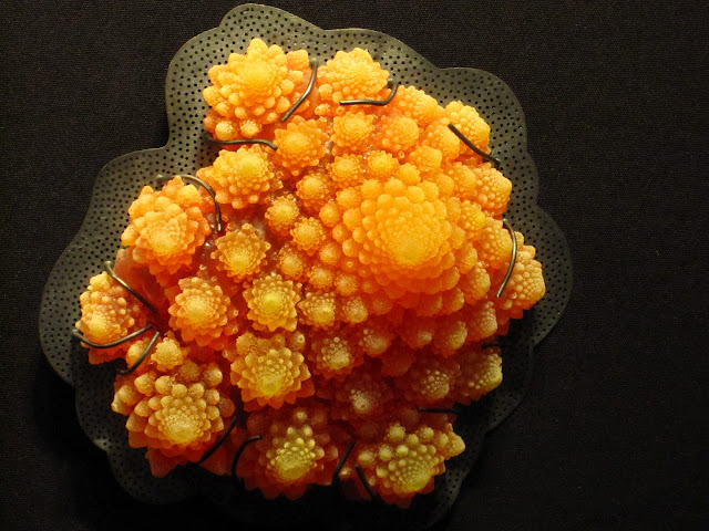 After the rings there is a timeline of jewellery design from the present to right in the past, and although the cool grey cast-iron jewellery from the Victorian era and the gorgeous golden granulated stuff from Egypt (which is so complicated and intricate that they still can’t figure out how it was made) the contemporary stuff is by far the wildest. That thing in the photo is an acrylic cast of a romanesco CAULIFLOWER – which, by the way, I urge you to eat just once in your life for the sheer pleasure of knowing that you are eating a fractal – mounted on a silver plate, just as a show piece, for the sheer hell of it. There was a belt buckle that was a row of Jack Russell terriers lined up standing straight, wearing hand-crocheted tiny football uniforms, and a necklace made of bits of old crack pipe. There was a diamond pendant that was completely encased in concrete to make a point about something deep and meaningful. I would have taken photos of all of these and more if it weren’t for the fascistic no-photography rule, so you’ll just have to visit the place and see for yourself, but whether you are a jewellery fan or have no interest whatsoever in whores and their trinkets, this will make your eyes bulge even just a tad.